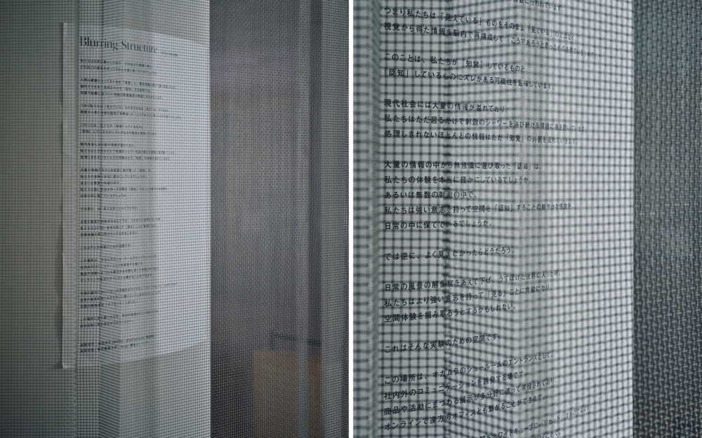 日常の風景の解像度をあえて下げ、うすぼけた世界に入った時、私たちはより強い意志を持って「見る」ことに貪欲になり、空間体験を掴み取ろうとするかもしれない。